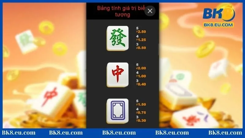 Dưới đây là hệ số nhân có trong game Mahjong Phoenix BK8:
